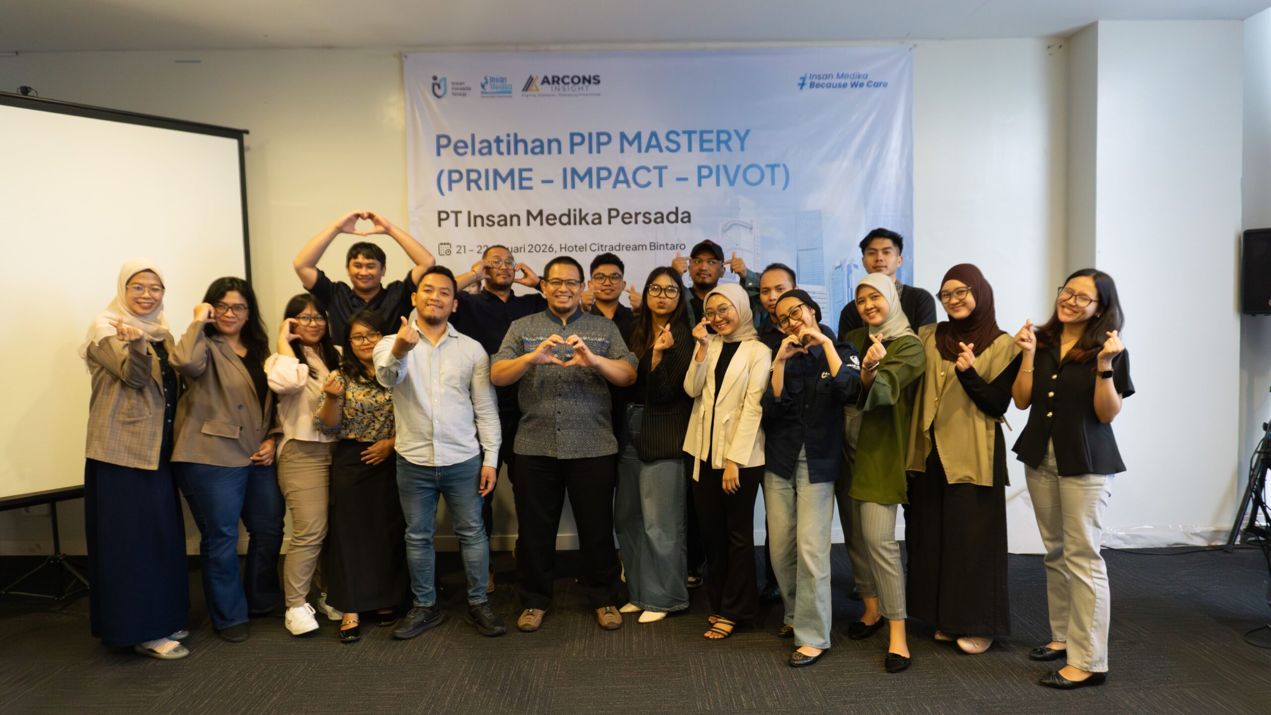 Pelatihan PIP Mastery diikuti oleh tim internal Insan Medika dan dilaksanakan pada tanggal 21–22 Januari 2026 di Hotel Citradream Bintaro, bekerja sama dengan ARCONS Insight, serta menghadirkan Salim Suharis, S.Kom., M.M. sebagai pembicara utama yang merupakan Master of PIP dan Business Strategy Specialist, dengan fokus pembelajaran yang saling terintegrasi.