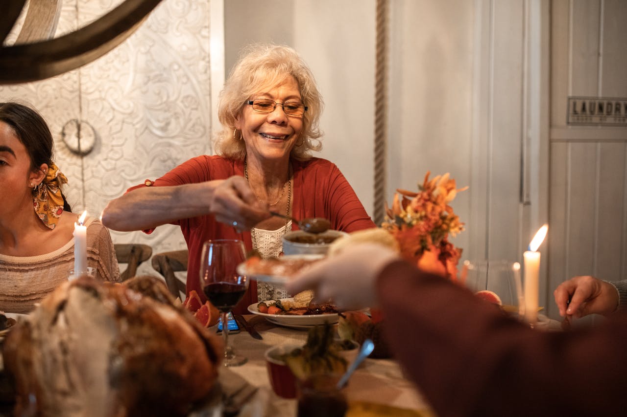 Ajak lansia makan bersama keluarga agar mereka tidak merasa kesepian. Putar musik lembut atau gunakan meja makan yang rapi untuk menciptakan suasana nyaman.